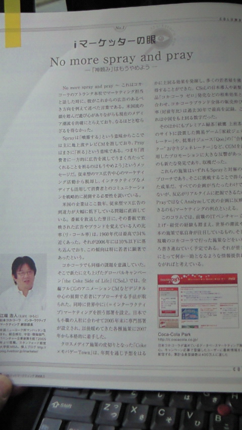 私は2005年のコカ・コーラ入社のときに現場を見たいと思って無理を言って2週間、大阪・神戸・福岡・京都で現場研修を行いました。バーチャルなインターネットのマーケティングをするに当たって現場と関係ない施策をいくら行っても意味が無いと思ったので、まず現場を見ておきたいと思ったからです。