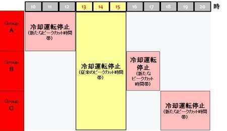 や、ピークカット機能による13 時から16 時までの全台の冷却運転停止に加え、10 時から21 時