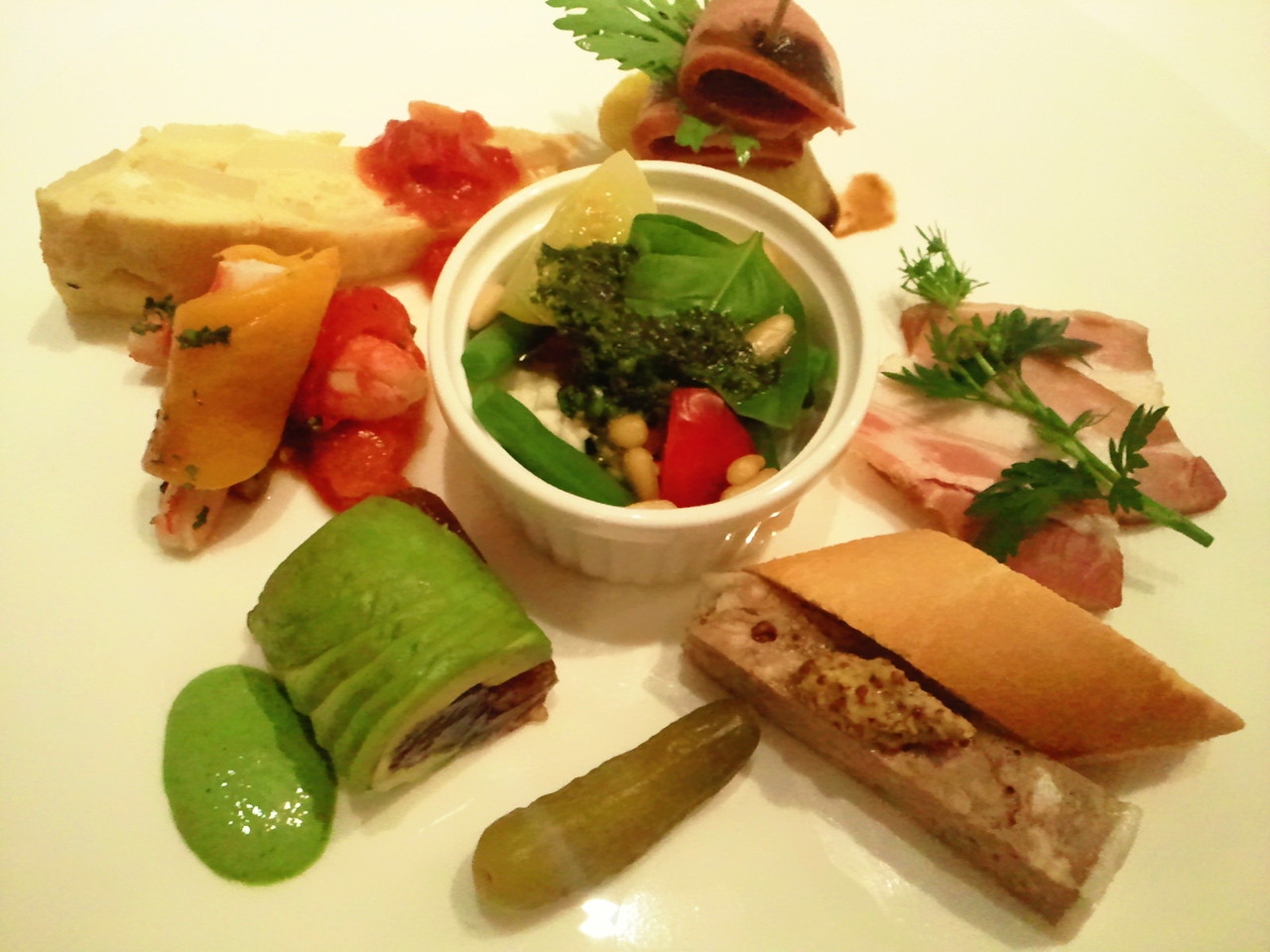 岩手白金豚のベーコン等を含むオードブルも引き立てます。彩りも鮮やか