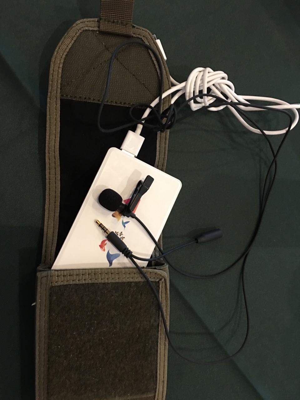 OneTigris米軍愛用スマートフォンポーチ (グリーン) 結構頑丈で、スマートフォンを縦に収納できて、マイクのピンジャックを差したままでもフタが閉められるところが魅力でした。また、電力不足に備えてモバイルバッテリーと一緒に収納可能です。