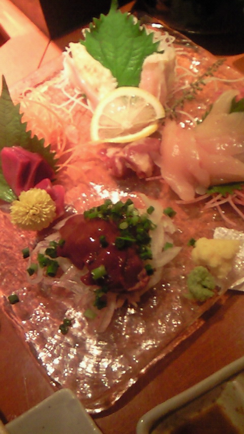 もちろん焼き鳥も各種料理もおいしかったのですが、何よりもびっくりしたのが刺身の鮮度でした。写真は「レバ」「砂肝」「ハツ」「タタキ」「ササミ」の刺身ですがとにかくおいしい!全く臭みがありません。
