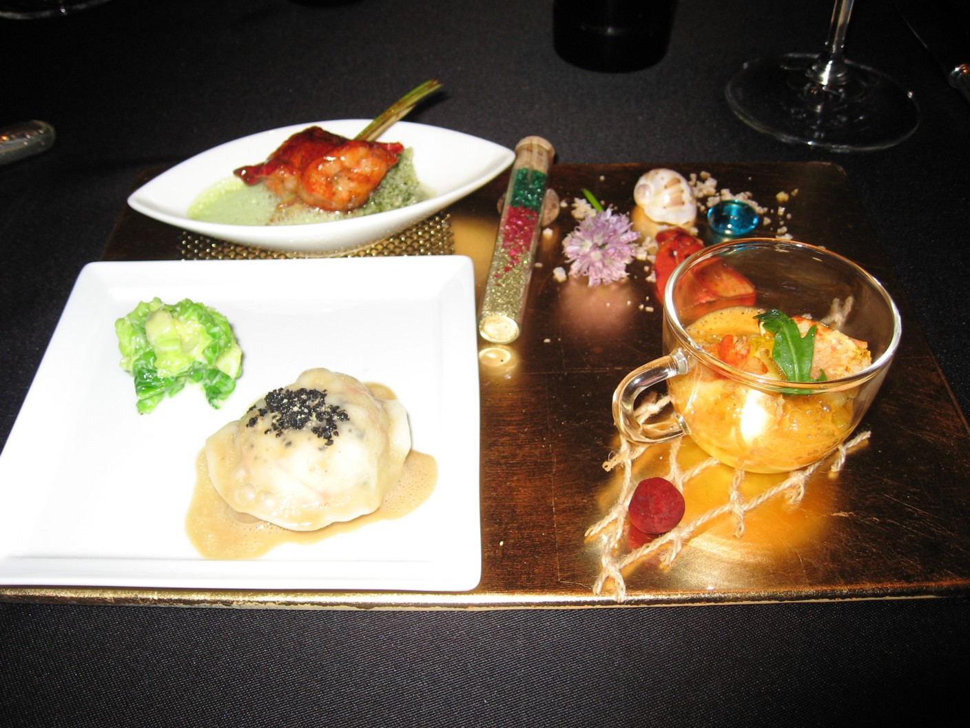さすが甲殻類で有名はRobuchon氏の料理。オマールエビの素材の素晴らしさもさることながらラングスティーヌのラビオリをエビシュウマイ並みのプリプリさに仕上げる技術は目を見張るものがある。