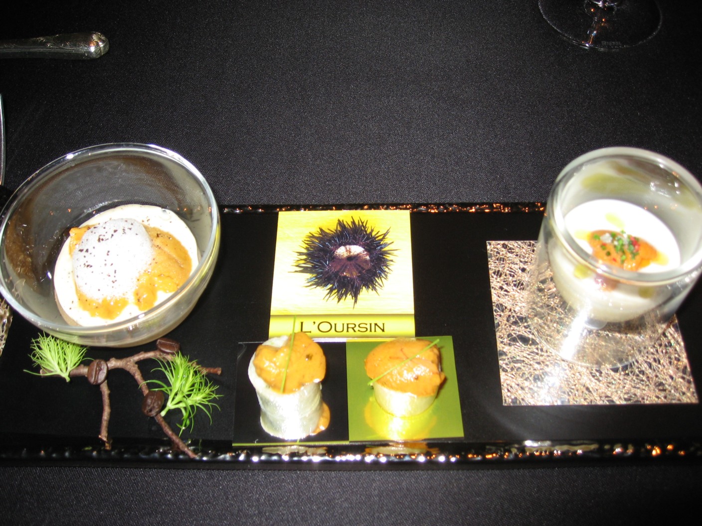 特にこのロブション風コーヒーうにはなんともいえぬ絶妙な味をかもし出していた。メレンゲというかクリーミーな泡の食感とうにの濃厚さ、コーヒーの香りがマッチして五感が刺激される素晴らしいものであった。