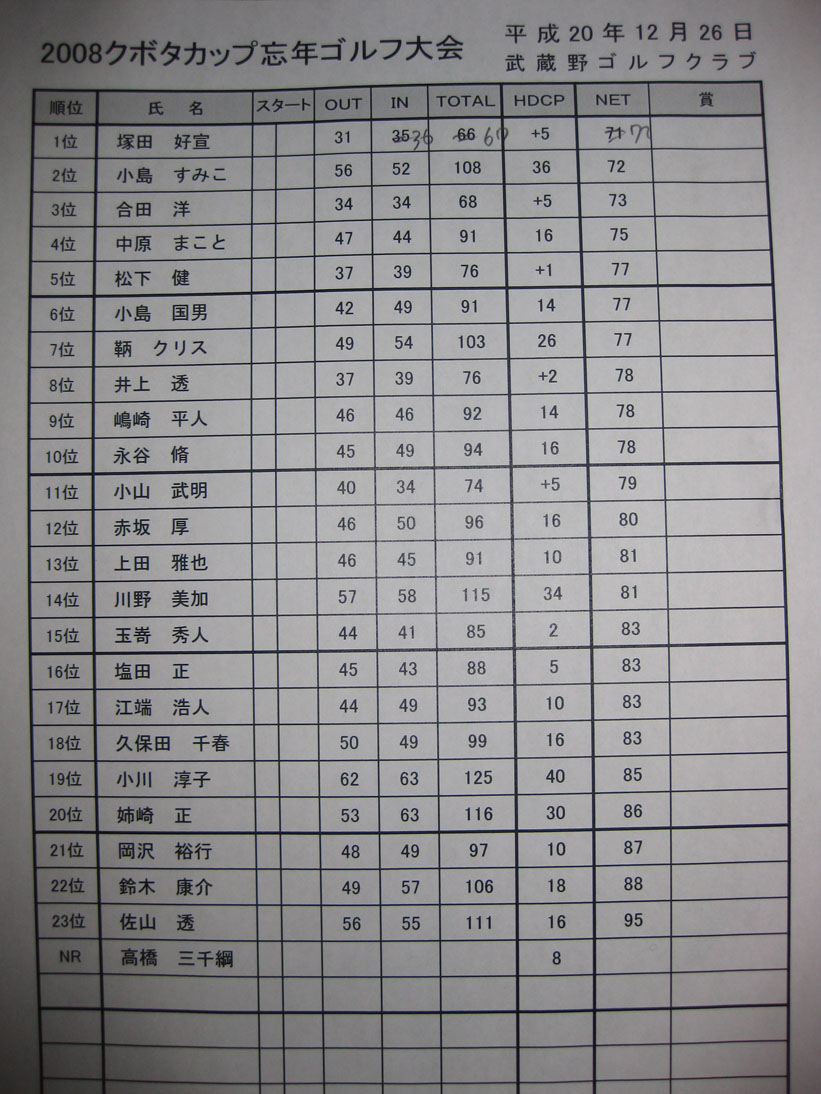 昨年お世話になった元ゴルフダイジェストの記者久保田千春さんのコンペにお呼ばれしてきました。久保田さんは夏に札幌国際カントリークラブ島松コースで一緒にゴルフもさせていただきました。来年もよろしくお願いします。