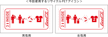 *)2007年にコカ・コーラ社にて出荷された500mlPETボトルの平均重量約25gを基に算出。今回のプロモーションに採用するTシャツの重量(メンズサイズ;150g、レディースサイズ;100g)のうち、再生ポリエステルの重量が各75g/50gであり、それを25gで割るとそれぞれ、500mlPET3本分/2本分に相当します。