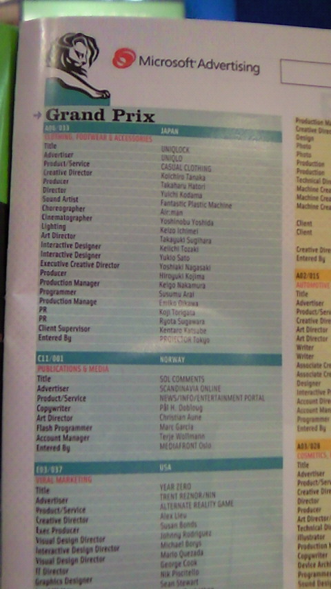 Cyber Gold Lionには日本からは AXE Lazer (Bascule Tokyo), Rec You (GT Tokyo), Uniclock (別部門でもGold, Projector Tokyo)であった。