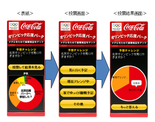 コカ・コーラオリンピック応援パークのブログパーツをリリースしました。オリンピックにちなんだアンケートに投票でき、みんなの投票結果が見られます。アンケートのお題は今日からオリンピック開催期間中、1日に3問ずつ出題していきますので、是非使ってみてください。