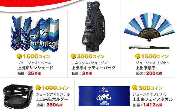 今回の目玉は携帯とジョージアグッズプレゼント。